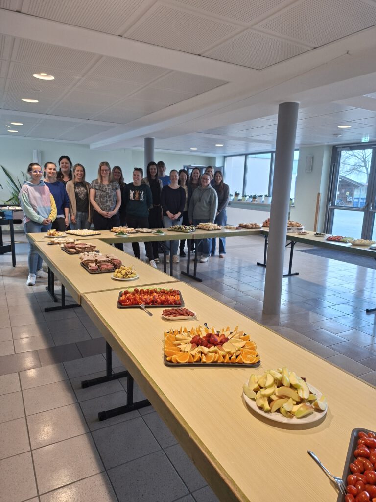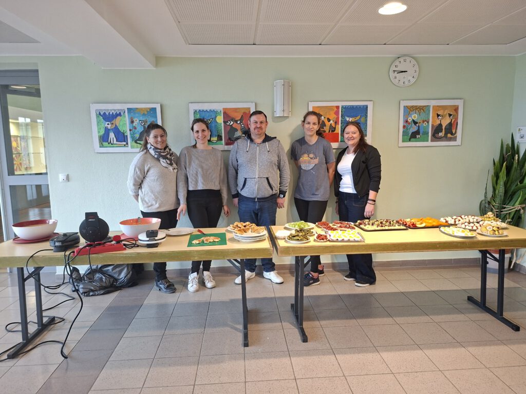 Am Freitag vor den Osterferien freute sich die Schulfamilie über ein reichliches, gesundes Frühstück mit vielen Leckereien. Mamis und Papis schmierten Brote, schnitten Obst und Gemüse und machten Tomate-Mozzarella-Spieße und Käse-Trauben-Spieße. Die Kinder und auch die Lehrer griffen beherzt zu und ließen sich das reichhaltige Frühstück schmecken. Ein herzliches Dankeschön an den Elternbeirat und die vielen fleissigen Helfer!